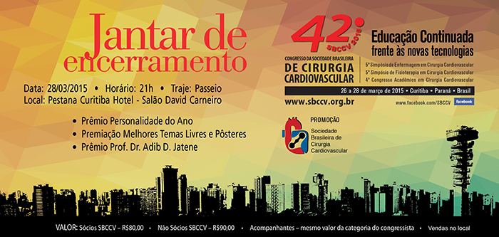 VALOR: Sócios SBCCV – R$80,00 • Não Sócios SBCCV – R$90,00 • Acompanhantes – mesmo valor da categoria do congressista